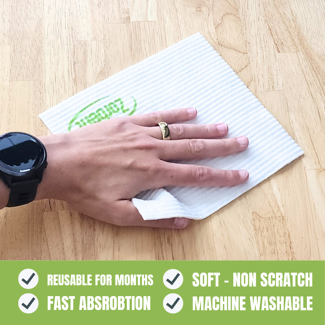 Your new favorite cleaning cloth - The Zorbent® Towel delivers fast, superior performance in absorbing spills, drips, and messes. Composed of sustainable wood pulp cellulose and natural cotton fibers, the Zorbent® Towel is designed to lock in moisture and messes without leaving residue behind. Its powerful absorbency makes it the perfect alternative to disposable paper towels or microfiber towels. The best part is, you can rinse, reuse, and compost at the end of its life (about 100 washes), making it a sustainable and cost effective choice for homes, businesses, and anywhere spills happen. Whether it’s in the kitchen, garage, workshop, or office, Zorbent® keeps clean up simple, safe, and eco-friendly.